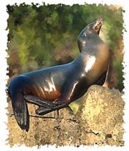 California Sea Lions breed in the summer months from June to July. Their one offspring is born one year later. They live on islands, especially liking sandy or rocky beaches. These are the trained seals seen in many zoos, circuses and oceanariums. They are very fast, swimming up to 25 mph. They can descend to 450 feet and remain underwater for about 20 minutes. They use sonar for underwater navigation and also for finding their prey, which includes squid, octopus, abalone, and a variety of fish. They generally hunt at night.