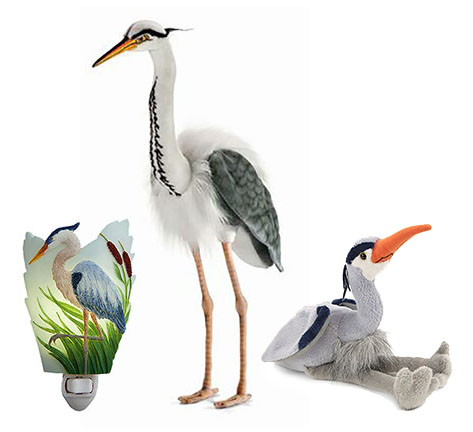 Find some Great Blue Heron products at our sponsor's online gift shop. They have the Hansa Great Blue Heron plush bird, the Wildlife Artists Great Blue Heron and the Great Blue Heron Night Light from Ibis and Orchid. The Great Blue Heron is at our sponsor's online gift shop.