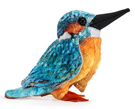 The Common Kingfisher (Alcedo Atthis) is about 6.5 inches long with a wingspan of 10 inches. This Kingfisher has a wide distribution across Eurasia and North Africa. As with all Kingfishers, the diet is primarily fish. It has blue upperparts and orange underparts with a long bill. The image at left is the Common Kingfisher finger puppet made by Folkmanis. Check the Jeannie's Cottage gift shop to see if this is available: www.jeanniescottage.com.