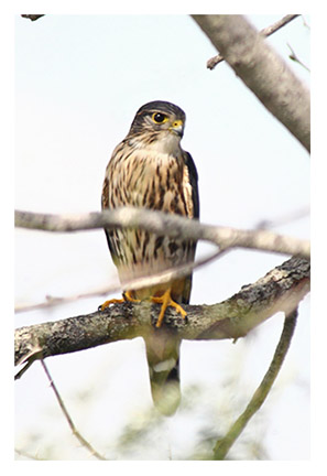 The Merlin is a swift and aggressive bird, harassing larger hawks and gulls and attacking intruders that approach its nest. As with other falcons, the female begins incubating as soon as the first egg is laid so the young hatch at intervals; when food is scarce, the larger young are fed first. Unfortunately, the smaller ones sometimes die of starvation. Whereas this does seem cruel, it ensures that some young will be raised successfully even in difficult times.