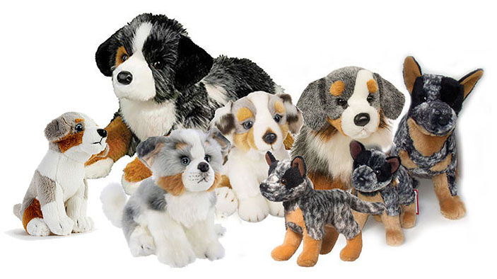 These plush toy Australian Shepherd dogs are very beautiful and made by Ganz Heritage Collection, Douglas Cuddle Toys, Bearington and Demdaco.