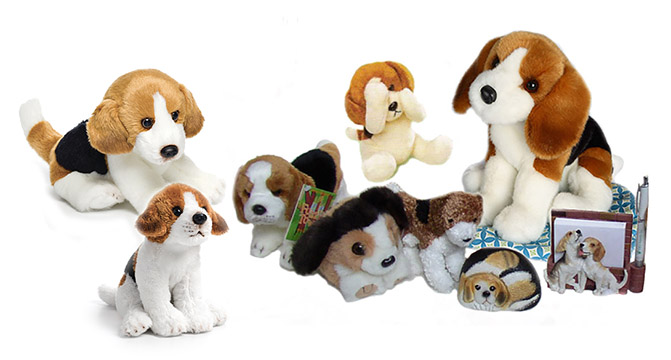Beagle lovers will find a variety of Beagle giftware at our sponsor's gift shop. In the image above we have a Fuzzy Town Beagle plush pet, Sherlock the Puffkin Beagle, Baron the little Douglas plush Beagle as well as Balthezar, a Beagle Garden Stone, a Beagle Note Pad, and a Russ Beagle Peek-a-Buddy plush pet. The beagles at left are both made by Demdaco.