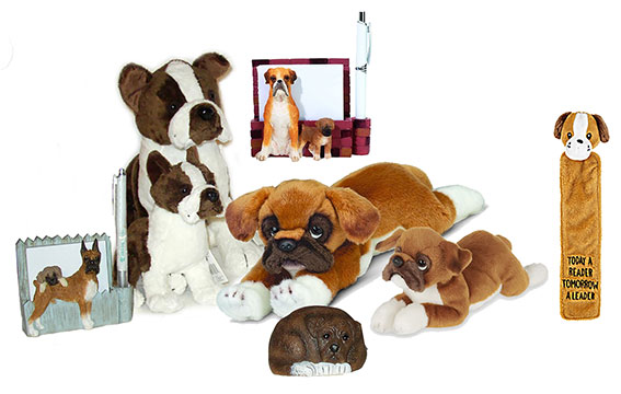 d information in the Kennel here at Animals n More. These little Boxer dog stuffed animals include an E&S Boxer figurine notepad in two styles, Rocky the Boxer plush toy in two sizes from Ganz, a little Garden Boxer Dog figurine and two Bearington Boxer plush dogs named Roscoe and Lil Roscoe. At far right is a little Boxer Page Pal Bookmark.You can find some Boxer stuffed animals and gifts at our sponsor's online gift shop: Jeannie's Cottage LLC.