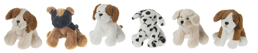 Ganz produces a variety of plush pets for people of all ages. This series is the Soft Spot Dogs and it includes the Cocker Spaniel, German Shepherd, Jack Russell Terrier, Dalmatian, Golden Retriever and Beagle. These are all approximately 5 inches tall. They are surface washable and for ages 3 and up.