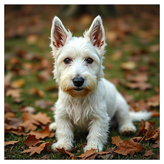 Like the cairn, these dogs are small (11 inches) and about 20 pounds. The coat is pure white and very soft. It is double coated, wiry on the outside and soft on the inside. Regular grooming is necessary to keep the coat tangle free.