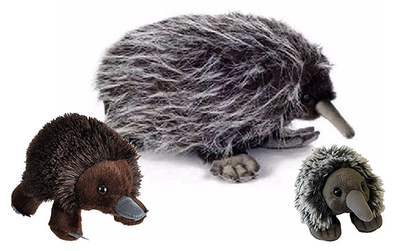 The plush toy Echidnas shown at top are made by Hansa and Wild Republic. Find them at our sponsor's online gift shop: www.jeanniescottage.com.