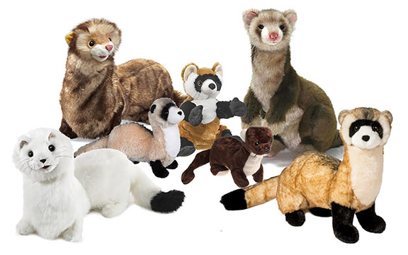 Find ferret stuffed animals, plus facts and information about the black-footed ferret at Animals N More. We have several ferret plush toys at our sponsor's gift shop, Jeannie's Cottage LLC. These include a Wildlife Artists Ferret Hand Puppet, a Hansa Ferret, a Douglas Dapper the Ferret and Runner the Ferret Beanie Baby. There is also a white ermine from Folkmanis and a ferret hand puppet.