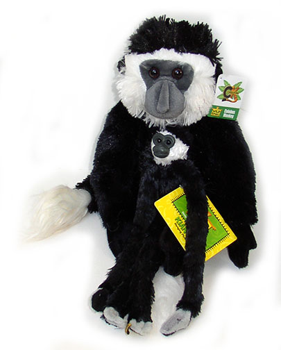 These plush toy Colobus Monkeys are made by Wild Republic. Find them at our sponsor's online gift shop. They seem to be Angolan Black-and-white Colobus (Colobus angolensis) from central Africa.