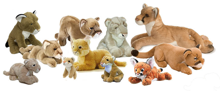 We have quite a collection of Cougar stuffed animals including a Cougar Cub from Wildlife Artists, Arizona, Phoenix and Vegas the Cougar stuffed animals made by Jaag, Pecos the Cougar stuffed animal from Aurora, a Mountain Lion Cuddlekins stuffed animal from Wild Republic