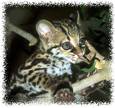 The Ocelot, Felis (Leopardus) pardalis, is an American jungle cat that loves darkness. At home in gloomy dense forests, it never leaves its lair until the evening light is gone and the dusk has turned to darkness. The darker the night the farther the ocelot will prowl. Even moonlight nights impede its activities.