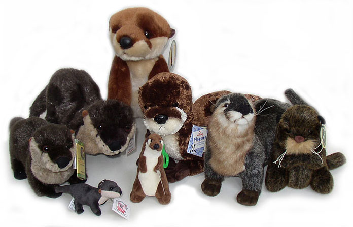 We have the Hansa River Otter, American River Otter stuffed animal from Aurora Plush,Otto the Bearington River Otter stuffed animal, and the North American Wildlife Creations River Otter, created by Stuffed Animal House. Also there is a Small of the Wild River Otter from Wildlife Artists and a River Otter plush keychain from the Stuffed Animal House. The large River Otter in back is from Animal Planet. Check our sponsor's online Gift Shop to see if there are any River Otters there. You can see the Sea Otters here.