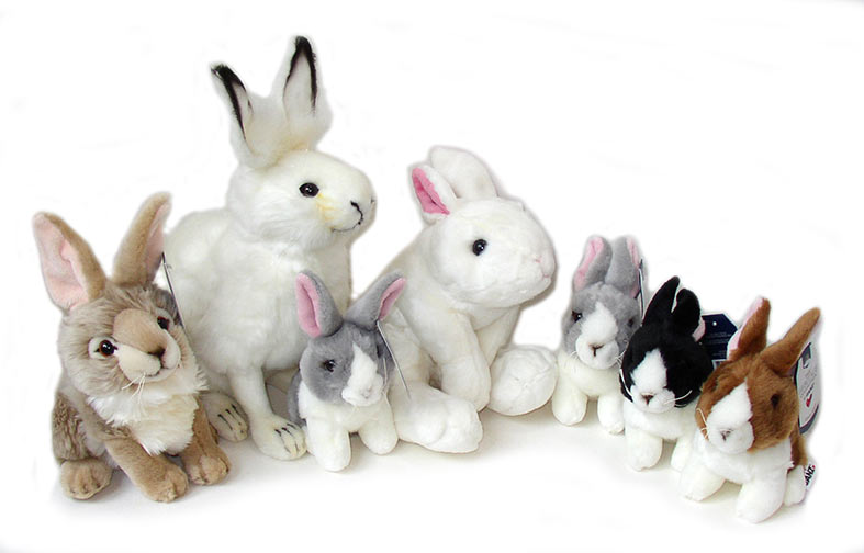The plush rabbits shown above are made by Hansa and Ganz. Also, the rabbits shown at top can be found at our sponsor's online gift shop. Check the Gift Shop to see what rabbits we have in stock.